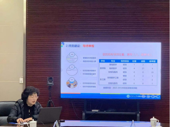 刘国祥经理强调,要以完善十四五规划为契机,进一步明确医院发展定位,统一思想、凝聚共识,把教学科研条件建设纳入到新院区的整体规划,尽快完成向医教研协同发展的教学型医院的转变。同时要着力做好人才队伍工作,坚持引育并重,进一步加强高层次人才队伍建设。各单位要相互学习和借鉴,坚定决心、充满信心,加快加入学校的步伐,不断提升队伍向心力和凝聚力,增强自身的归属感、荣誉感和使命感。